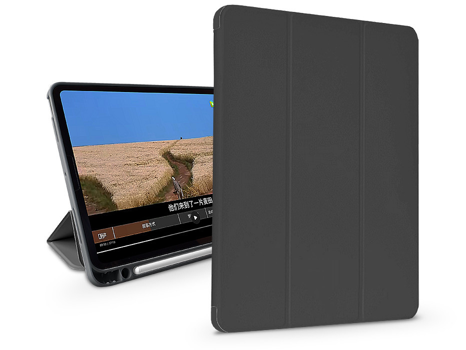 Apple iPad 10.2 (2019/2020/2021) tablet tok (Smart Case) on/off funkcióval, Apple Pencil tartóval, mágneses töltővel - Devia Leather Case With Pencil Slot -fekete