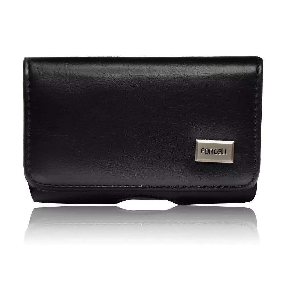Forcell univerzális övre csatolható fekvő fekete bőrtok (Apple iPhone 5G/5S/5C, Xperia J)