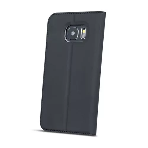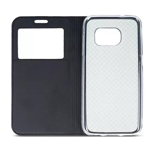 Smart Look Huawei Y6 (2018) oldalra nyíló bőrhatású ablakos könyv tok szilikon belsővel fekete