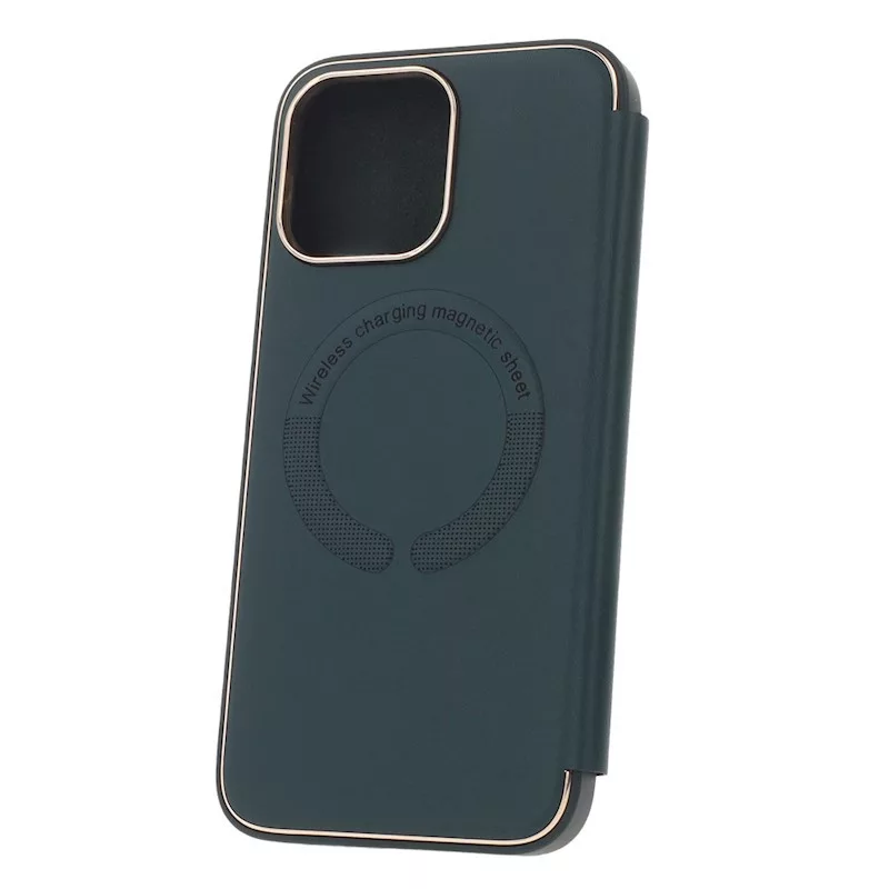 Smart Gold Frame MagSafe Apple iPhone 12 / 12 Pro 2020 (6.1) oldalra nyíló könyv tok szilikon belsővel zöld