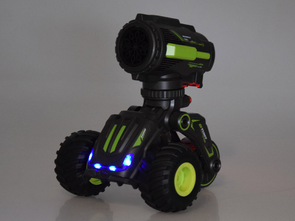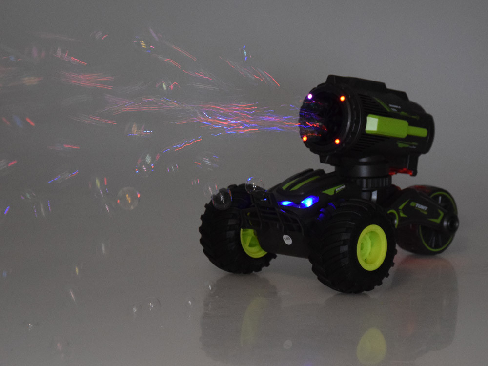 Fedezze fel csodálatos kaszkadőr járművünket, amely nemcsak csodálatos akrobatikát végez, hanem szappanbuborékokat is fúj, és a szórakozás új szintjére emeli a szórakozást! Ez az egyedülálló kombináció rengeteg szórakozást nyújt gyerekeknek és felnőtteknek egyaránt. Ráadásul a játék ragyogó, és ezzel az autóval minden pillanat tele varázslattal és szórakoztató légkörrel. Készen állsz egy őrült kalandra? Vegyél részt az akciók és a buborékőrület izgalmas világában!Szórakoztató attrakciók:- távirányítóval vezérelhető autó- piros-kék lámpákkal világít az autó- indítás után hallani fogja a gyerek: jár a motor hangja, vidám zene - zenével, világítással és szappanbuborékot fújva halad előre, de természetesen ezeket a funkciókat kikapcsolhatod, és magával az utazással szórakozhatsz- a futómű a távirányítóval is emelhető és süllyeszthető, mindezt azért, hogy vonzóbbá tegyük a játékot.- széles, gumikerekek könnyen mozognak bármilyen felületen- bemutató menet - ekkor a jármű hajtja magát és szappanbuborékokat fúj, teljes őrület és remek móka- az ergonomikus távirányító tökéletesen illeszkedik a gyerek kis kezébeSima és A problémamentes vezérlés további előnye ennek a játéknak - a készlet tartalmaz egy távirányítót, amely több funkcióval rendelkezik! Ennek köszönhetően tudunk egyenesen menni, megfordulni, de a kerekeket jobbra-balra is tekerhetjük. Nem könnyíti meg az irányítást? Határozottan igen! És fújj szappanbuborékokat vezetés közben!A távirányító jellemzői:- be/ki kapcsoló- előre-/hátramenet- jobbra/balra fordulás- zene be/ki kapcsoló- világítás be/ki kapcsoló- demó üzemmód- jármű ki-/összecsukása- szappanfújás BubblesSzett tartalma: - autó - távirányító - palackfeltöltő folyadék - USB gyorstöltő kábelek - 1 x akkumulátor - csavarhúzó Tápegység: - autó: 3,7 V V 500 mAh akkumulátor (tartozék)- távirányító: 2 x 1,5 V AA (nem tartozék) Az első játék előtt töltse fel az akkumulátort. Biztosítsa gyermekének rengeteg látnivalót egy őrült Stunt járművel, amely szappanbuborékokat fúj! Látni fogja, hogy Ön és gyermeke sok időt töltenek együtt felejthetetlen szórakozással!A Jokomisiada üzletben távirányítós autók széles választékát találja, de robotokat és állatokat is! Meghívjuk Önt!
