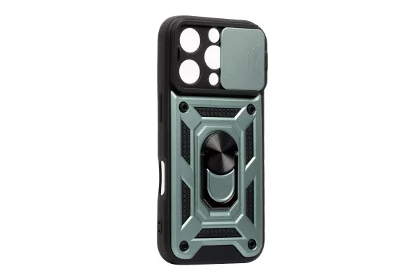 PJ ARMOR IPHONE 16 PRO 6.3 TPU+POLYCARBONATE ÜTÉSÁLLÓ, TOLÓABLAKOS, MÁGNESES TOK ZÖLD