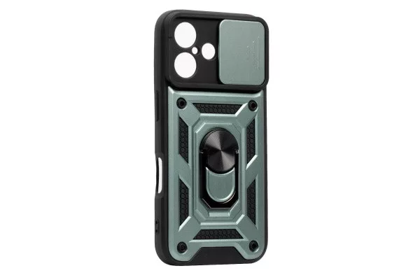 PJ ARMOR IPHONE 16 6.1 TPU+POLYCARBONATE ÜTÉSÁLLÓ, TOLÓABLAKOS, MÁGNESES TOK ZÖLD