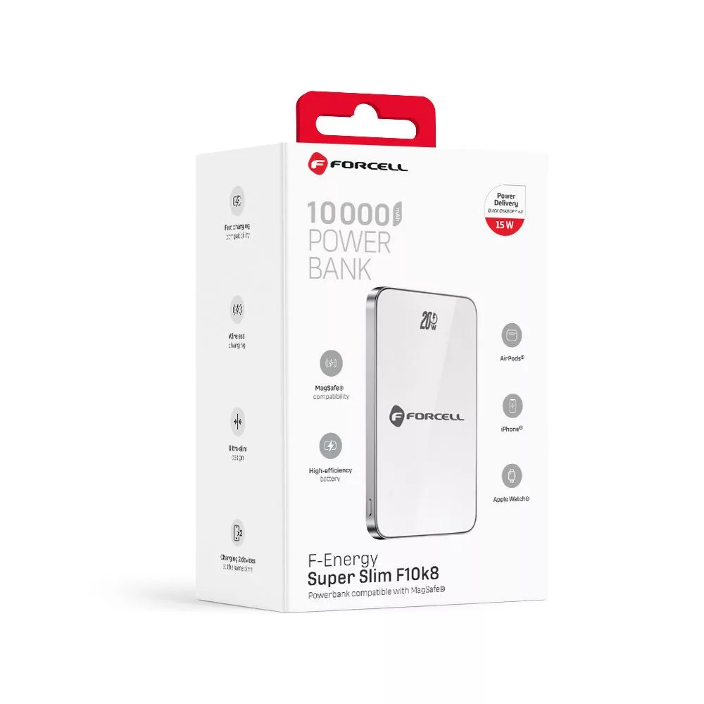 Az F-Energy Super Slim F10k8 egy modern külső akkumulátor, amelyet olyan eszközök felhasználói számára terveztek, mint az iPhone, Apple Watch és AirPods. Kivételesen vékony, könnyen tárolható és szállítható, mégis robusztus konstrukciójú, tartós anyagokból, például edzett üvegből és alumíniumból. További előnyei közé tartozik a gyorstöltési technológia támogatása és a 10 000 mAh kapacitás. Kobaltakkumulátor – Nagy teljesítményű.