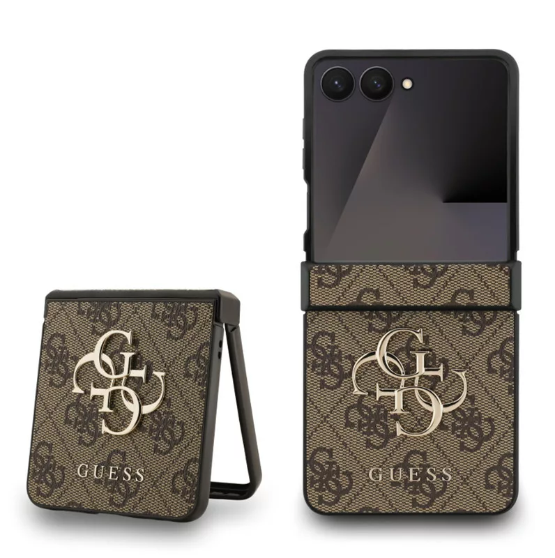 Guess PU 4G Metal Logo Samsung F766B Galaxy Z Flip 7 hátlapvédő tok barna (GUHCZF74GMGBR)
